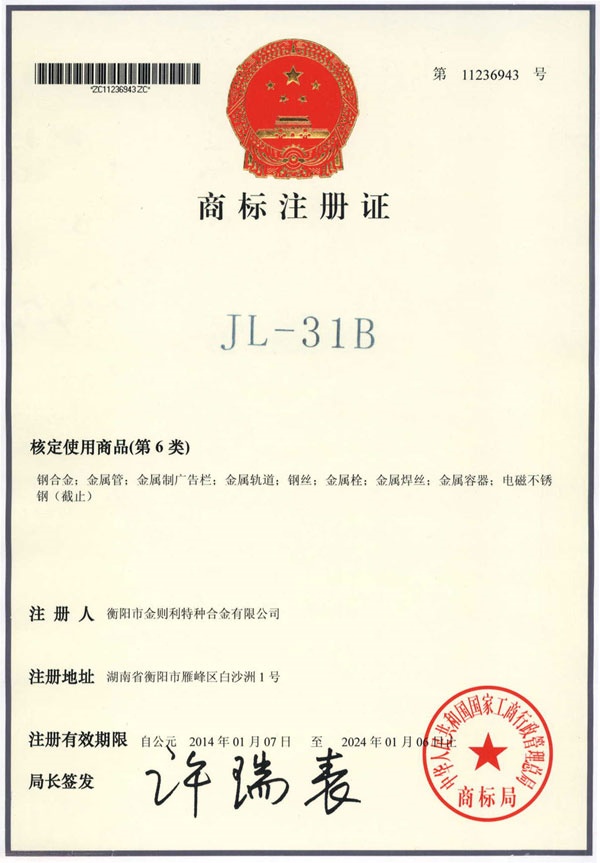 衡陽(yáng)市金則利特種合金股份有限公司成立于一九九九年十二月,注冊(cè)資本人民幣兩千兩百萬(wàn)元。注冊(cè)地址:衡陽(yáng)市雁峰區(qū)白沙洲工業(yè)園長(zhǎng)塘路2號(hào)。公司主營(yíng)耐蝕軟磁合金,為湖南省高新技術(shù)企業(yè)。公司自成立以來(lái),即致力于耐蝕軟磁合金的研發(fā)。 研制出的JL-31(00Cr13si2Pb)、JL-31B(00Cr13si2)、JL-31BS(00Cr13Si2S)、JL-37B(0Cr17Si2)、JL-37(0Cr17···
