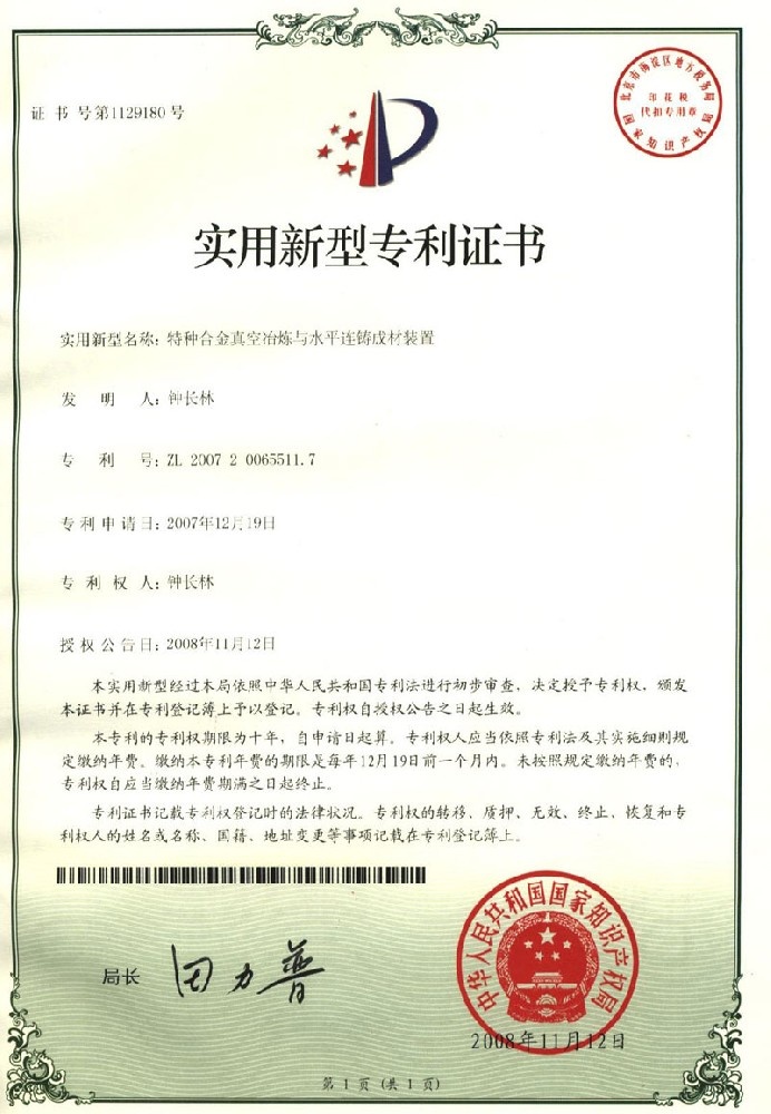 | 實(shí)用新型專(zhuān)利證書(shū) |